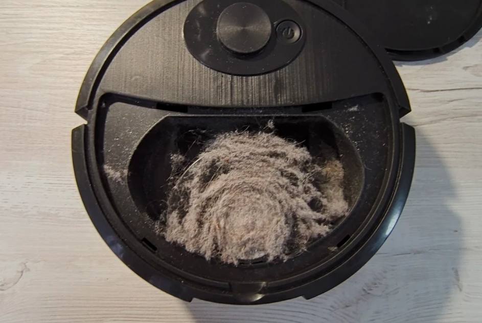 Убирается очень хорошо. Я не ожидал такого от него. На фото видно что он, собрал все волосы и пыль. Немного шумный, но не мешает. Столько он собрал за 2 дня в 1 комнате🤞